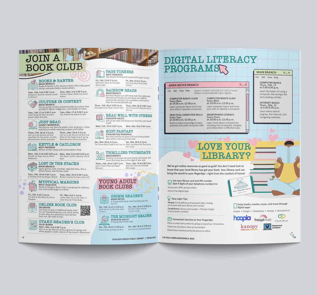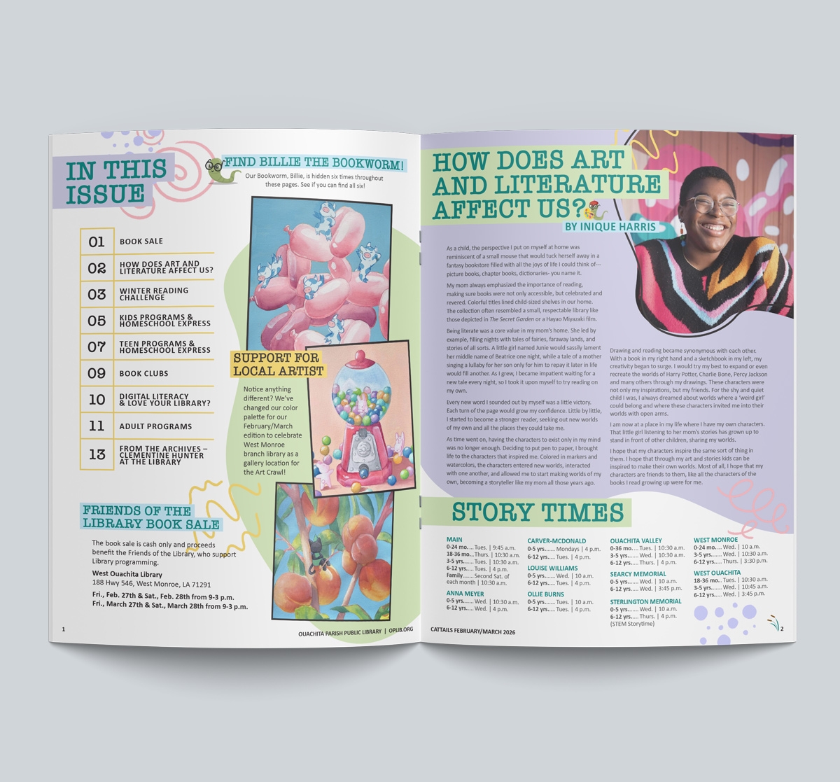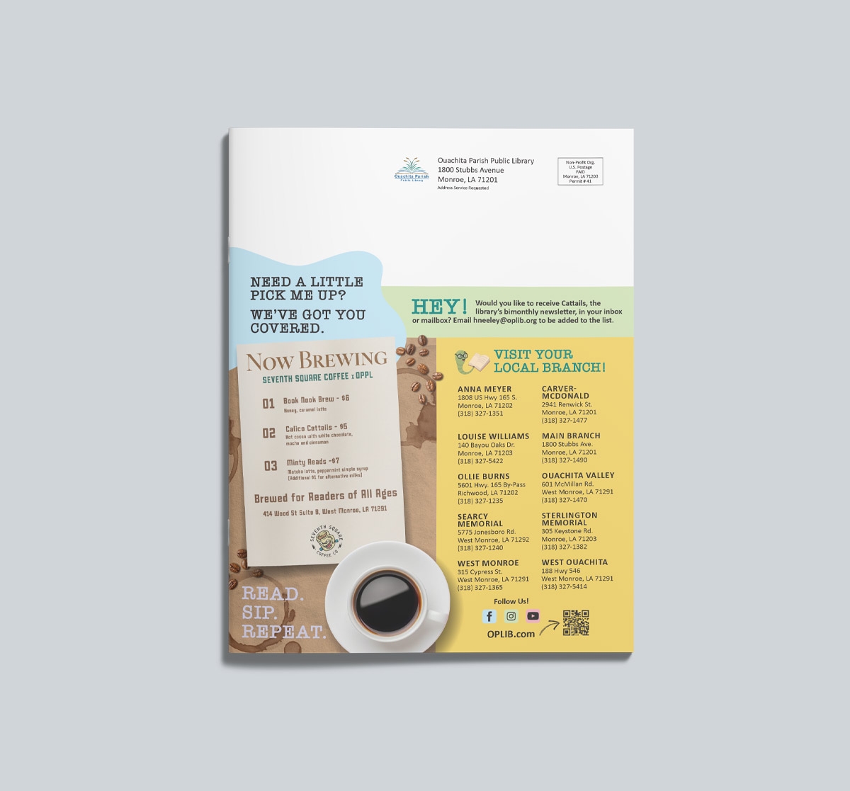 NMY has proudly partnered with the Ouachita Parish Public Library on its quarterly newsletter for the past six years. Over time, the publication has continued to grow and evolve—but this marks the first time we’ve introduced a completely new color palette. Drawing inspiration from Inique’s vibrant palette, we refreshed the newsletter with bold, eye-catching colors that breathe new life into this informative piece. By maintaining the familiar layout and key design elements, the updated palette enhances the library’s identity rather than disrupting it. With plans to continue exploring new color directions in future editions, we’re excited to keep pushing creative boundaries and delivering fresh, engaging designs.